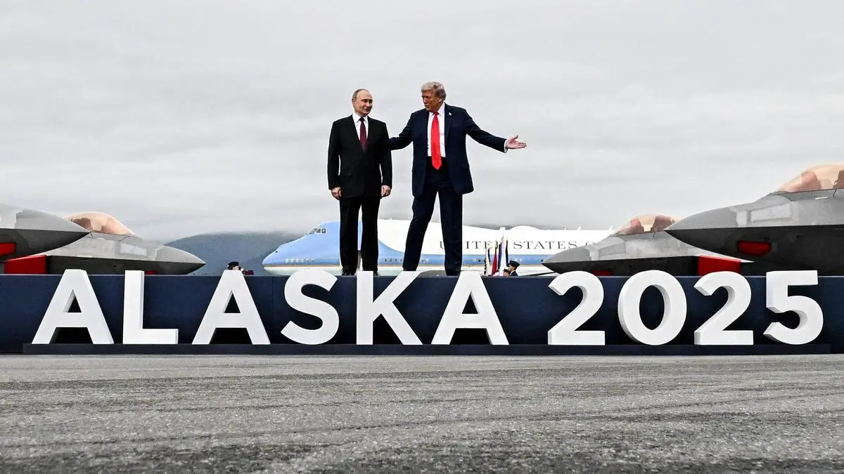 Zumindest die Ästhetik stimmte, als Donald Trump am Freitag seinen russischen Amtskollegen Wladimir Putin auf einer Luftwaffenbasis in Alaska empfing. Der Kremlchef steht wie ein Schuljunge eingeklemmt inmitten des körperlich deutlich größeren US-Präsidenten und mehreren geparkten F-22-Raptor-Kampfjets, die das aufgestellte Podium bedrohlich zu umzingeln scheinen. Über ihren Köpfen donnern ein B-2-Bomber (das ist der Flugzeugtyp, mit dem die USA kürzlich die iranischen Atomanlagen angegriffen und das Programm um Jahre zurückgeworfen haben) und weitere Kampfjets in Formation, während sich Trump zu Putin beugt und sagt: „This ain't Ukraine, buddy.“