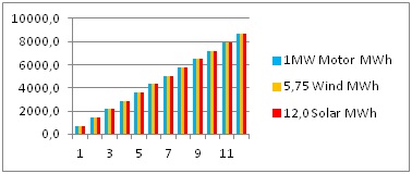 Anders ausgedrückt: Um ein Motorkraftwerk mit nominell 1 MW bei 98,5 Prozent Auslastung zu ersetzen, muss man 5,75 MW Windleistung oder sogar 12 MW Solarleistung installieren – und deren Produktion bei „gutem“ Wetter auch irgendwohin schaffen, wo sie sinnvoll genutzt werden kann.